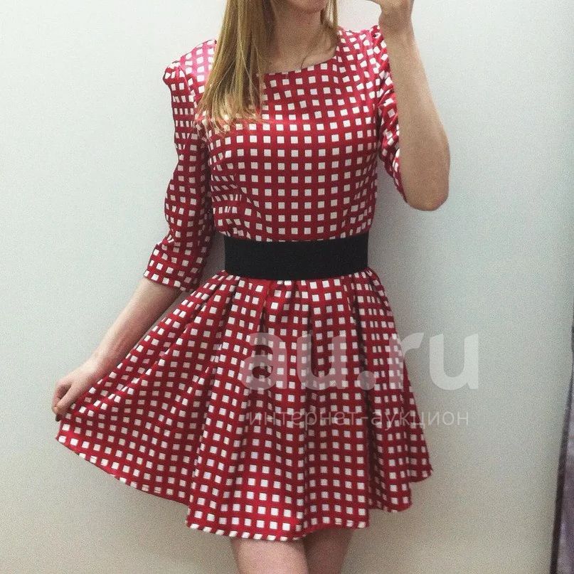 платье короткое красное в клетку новое