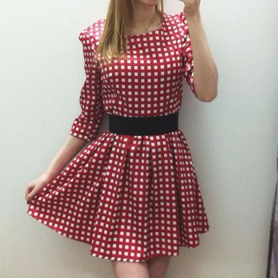 Повседневное короткое красное в белый квадрат платье новое