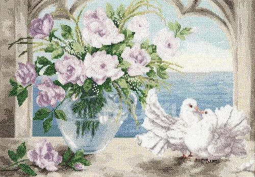 Картина, вышитая крестиком "Верность" / "Голуби"
