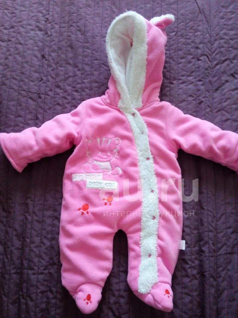 На этикетке указан размер 3-6 месяцев. Реально в 6 месяцев очень маленький. Оптимально для детей 2-4 месяцев. Не настолько теплый, чтобы носить осенью или весной. Прохладный август, сентябрь. Состояние идеальное.