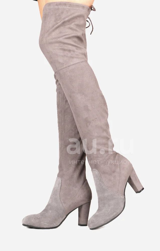 Модные сапоги - ботфорты, выполнены из комбинированного материала: низ - натуральной замши, верхняя часть выполнена из искуственного велюра.