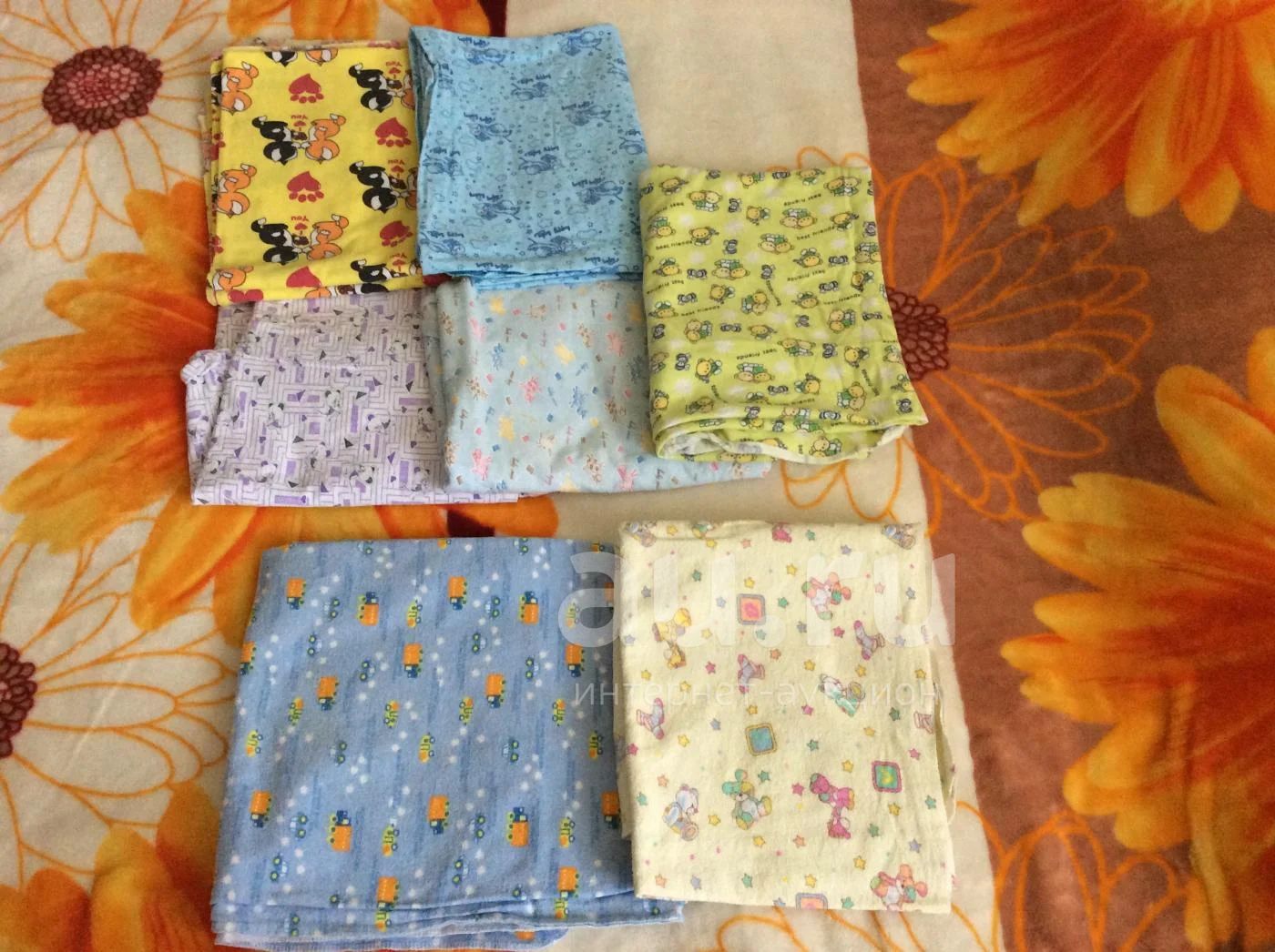 5 трикотажных и 2 фланелевых, не пеленались, оспользовали только на подстелить в кроватку. Цена за все пеленки