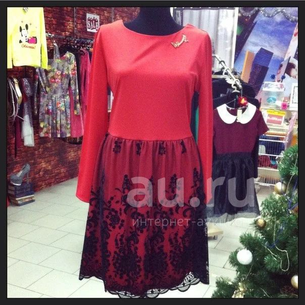 Платье кор красное с черным гипюром