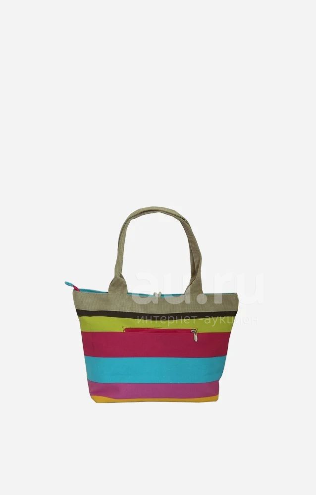 Пляжная сумка выполнена из плотного текстиля. Детали: две ручки, застежка на молнии.