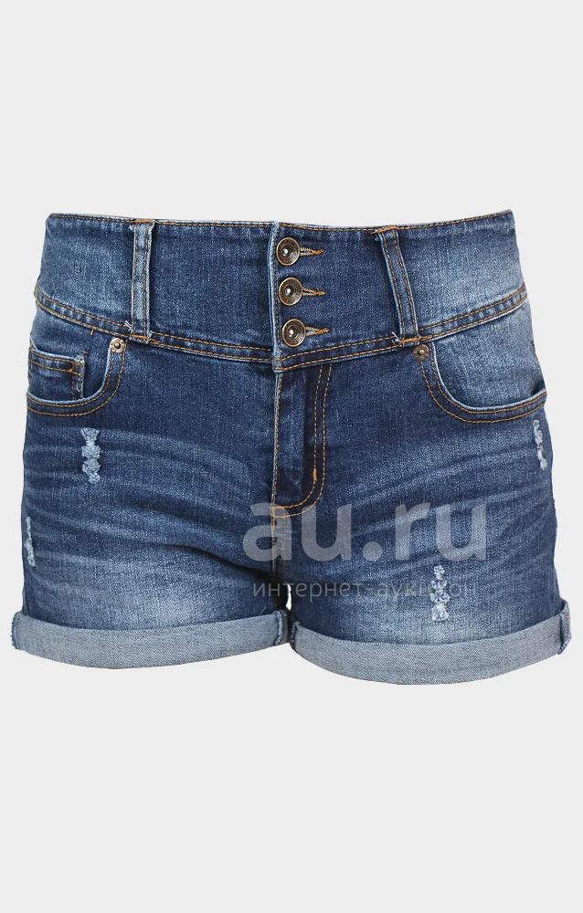 Джинсовые шорты короткого фасона. Модель из денима синего цвета. Детали: прилегающий крой, карманы, шлевки под ремень, завышенная талия.