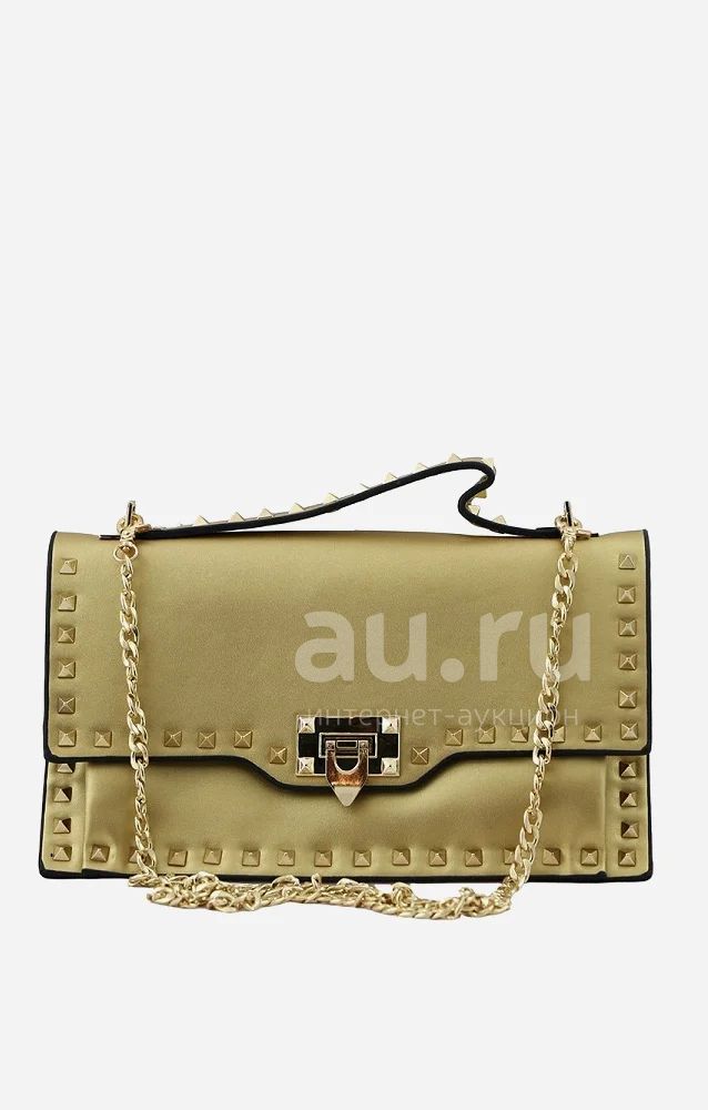 Стильный клатч в форме конверта. Модель выполнена из прессованной кожи коричневого цвета. Оконтовка и ручка украшены декоративными клёпками. Детали: замок на клапоне, длинная съемная ручка-цепь, общие размеры 30*18 см