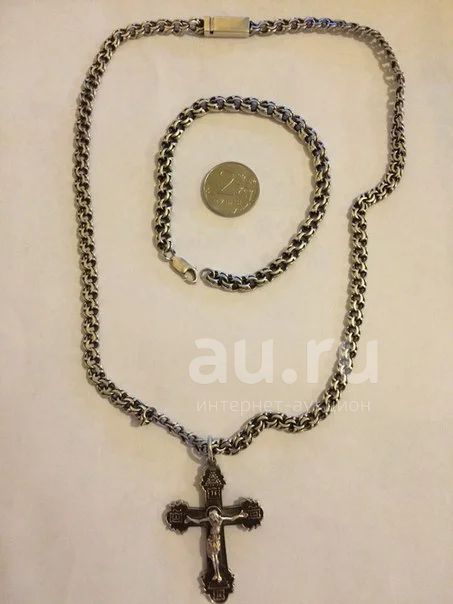 Комплект серебро цепь браслет крест серебрянный