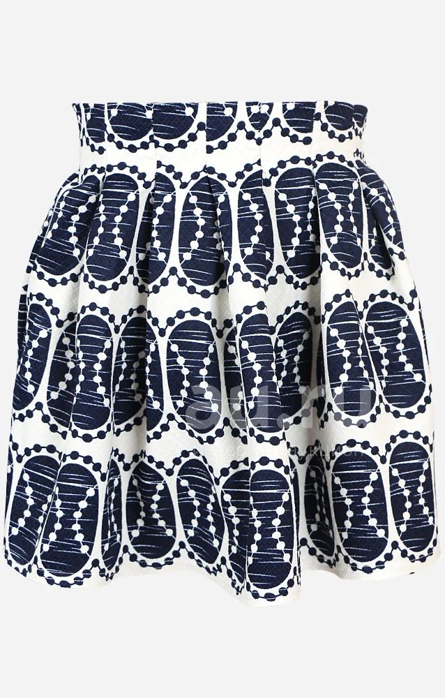 Кокетливая и стильная юбка, из плотной ткани синего-белого цвета с принтом в виде узоров.Такое изделие смотрится очень мило, подчеркивая изящные линии Вашей фигуры. Будьте невероятно нежны и прекрасны в своем образе.