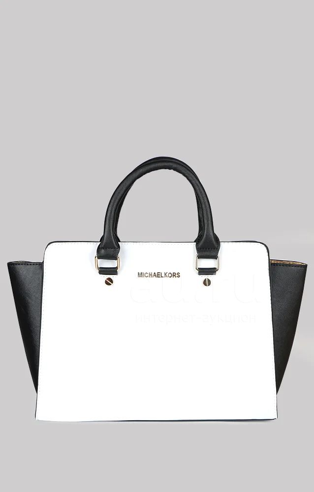 Модная сумка от Michael Kors в бело-черном цвете. Модель выполнена из прессованной кожи. Детали: две удобные ручки, застежка на молнии, съемный плечевой ремень.