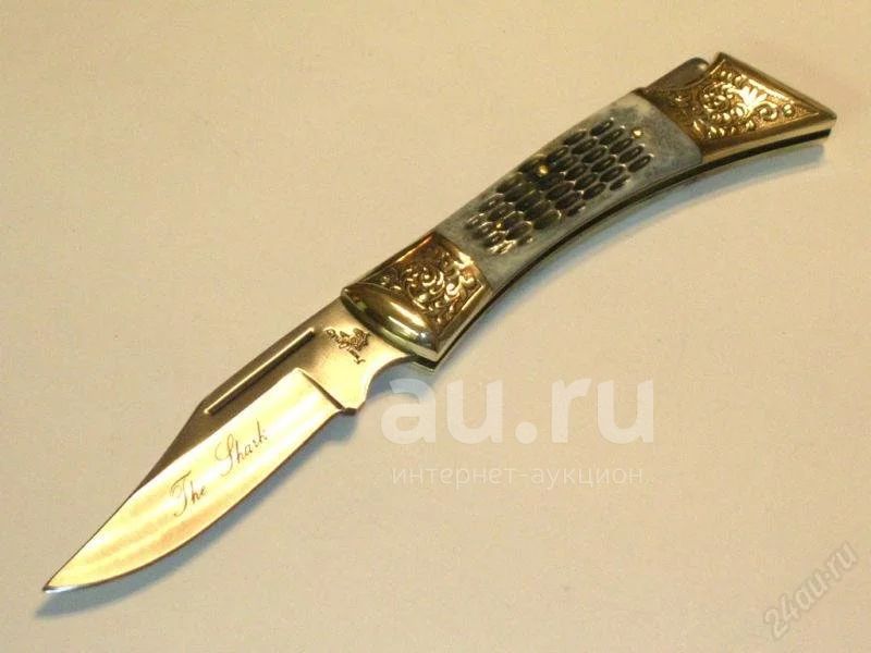 Отличный классический нож с накладками из кости, красивая латунная гравировка, хирургическая сталь.