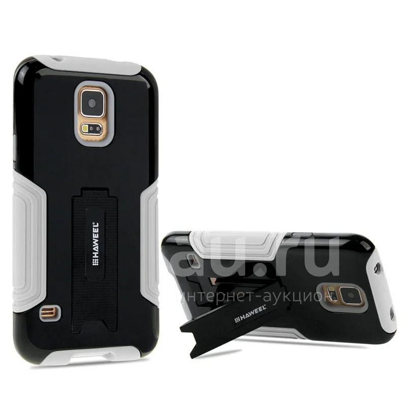 Чехол бампер противоударный со складной подставкой Haweel для Samsung Galaxy S V / S5 / G900F/G900H (i9600) силикон +пластик чёрный