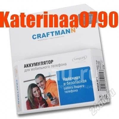 Craftmann - качественные аккумуляторные батареи для мобильных и сотовых телефонов.По характеристикам батарейки craftmann не уступают оригиналу,даже превосходят! Длительность службы аккумулятора зависит от множеств условий. Главные - это объем и химический состав элемента питания. В аккумуляторах Craftmann установлены элементы питания со 100% емкостью. Craftmann прекрасно "удерживает" заряд. Благодаря этому, как только индикатор на дисплее мобильного телефона указывает минимальный уровень резерва энергии, у Вас имеется больше времени оставаться на связи.