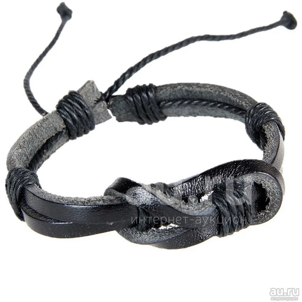 Кожаный браслет, размер регулируется, цвет - черный