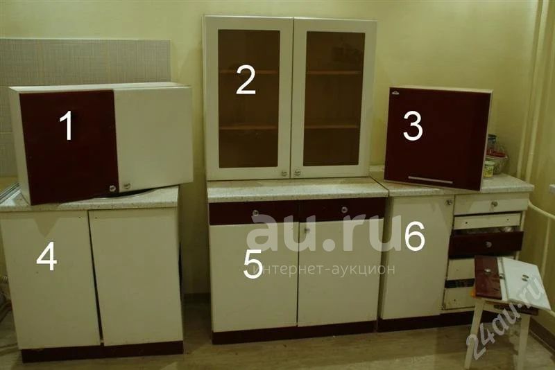 Бордово-белый гарнитур с глянцевыми фасадами, производства фабрики «Фаворит». В эксплуатации ровно 7 лет.