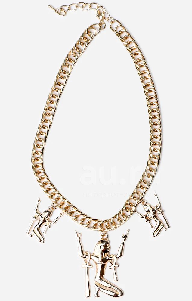Обратите своё внимание на украшения в египетском стиле - они так популярны в наше время. Колье из объемной золотой цепи с подвесками, позволит Вам выглядеть всегда стильно и интересно.
