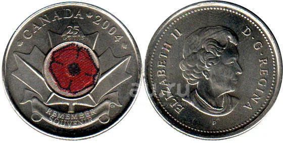 Монета 25 центов. Канада. День памяти.