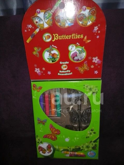 Отличный подарок для девочки любого возраста. В комплекте акриловые краски и формы для создания красивых бабочек.