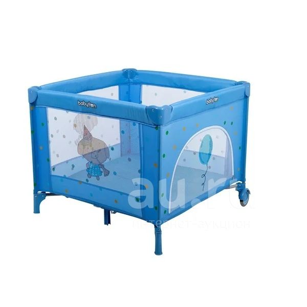 Складной манеж, голубого цвета. Фирма Babyton. Раскладывается и складывается в одно движение. Д-Ш-В: в сложенном состоянии 83*20*20, в разобранном 90*90*75. вход закрывается замком. Очень мобильная вещь. Войдет в любой автомобиль. имеется 4 ручки для ребенка. В хорошем состоянии. Манеж легко чистится. В комплекте чехол и москитная сетка. Чехол слегка порван.