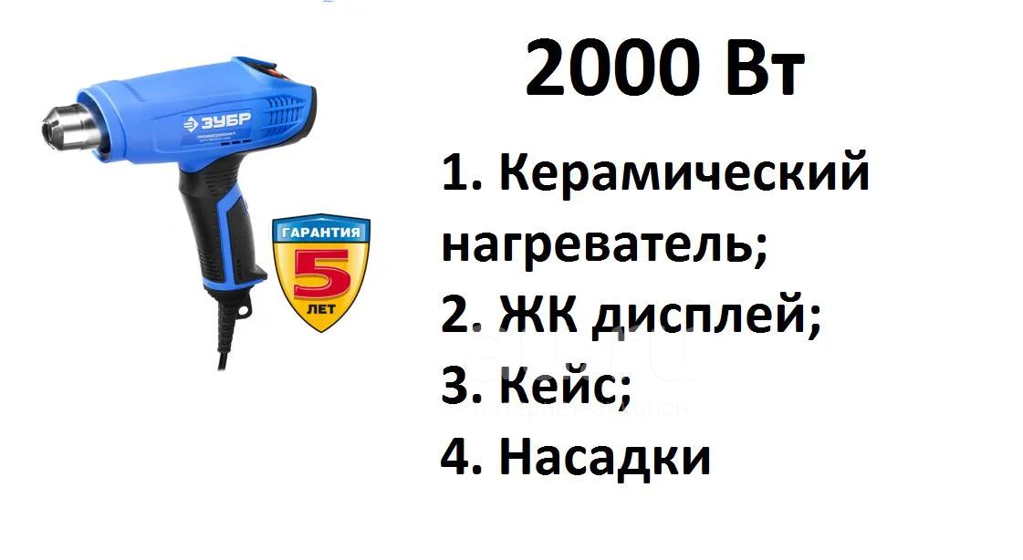 Фен строительный ЗУБР ФТ-П2000М2ДК (2000 Вт + кейс + насадки + ЖК дисплей)