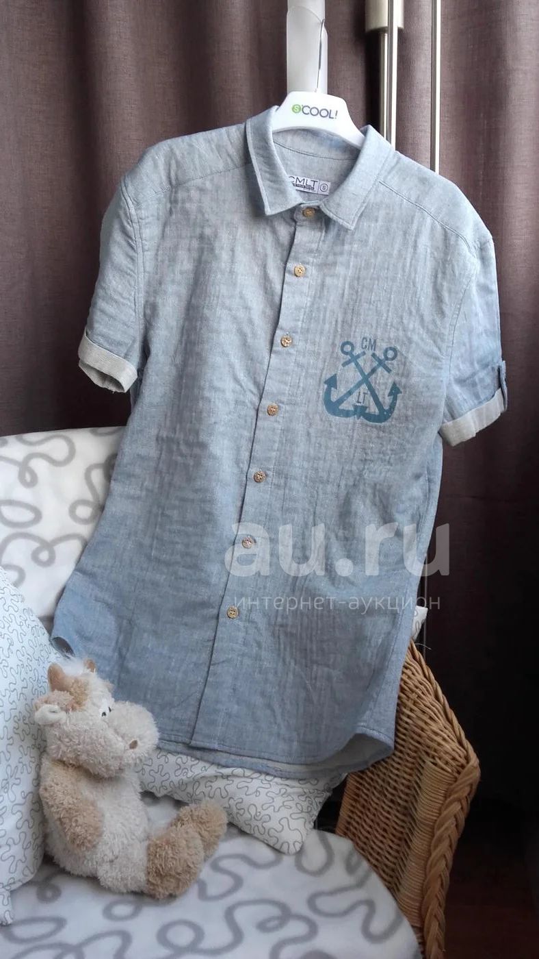 Рубашка на мальчика. Фирма SMLT. Цвет голубо-серый, размер S (от плеча до плеча 46см, длина 70см, ширина 49см. Все вопросы пишите на почту.