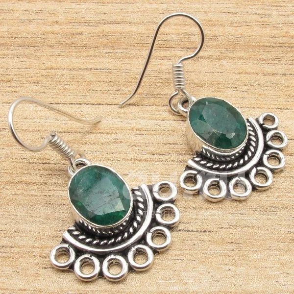 Серьги с натуральным изумрудом. Стерлинговое серебро. Новые. Этнический стиль, винтаж, бохо.