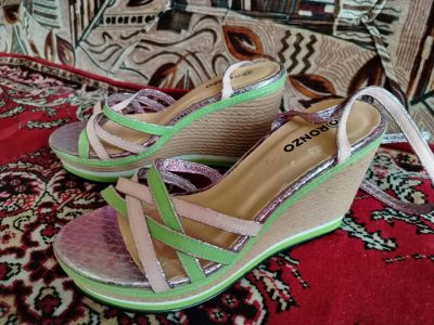 Очень нарядные, надеты 1 раз в помещении. Мерить на 38,5-39 р-р. Длина от края до края 26 см.