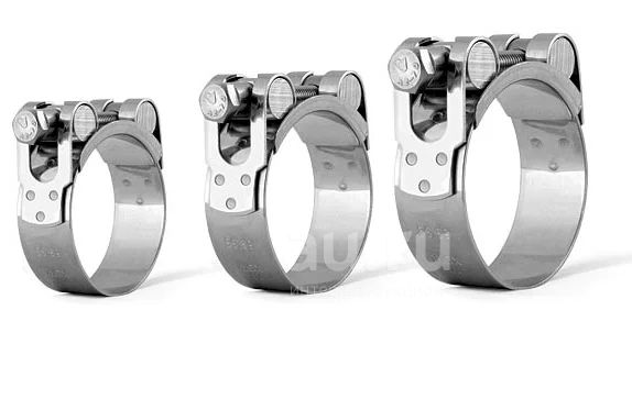 Хомуты силовые (усиленные) используют для крепления шлангов с высокой степенью твердости с пластмассовым или со стальным армированием. Ленты и замок сварены в единую конструкцию, что позволяет выдерживать значительные усилия.