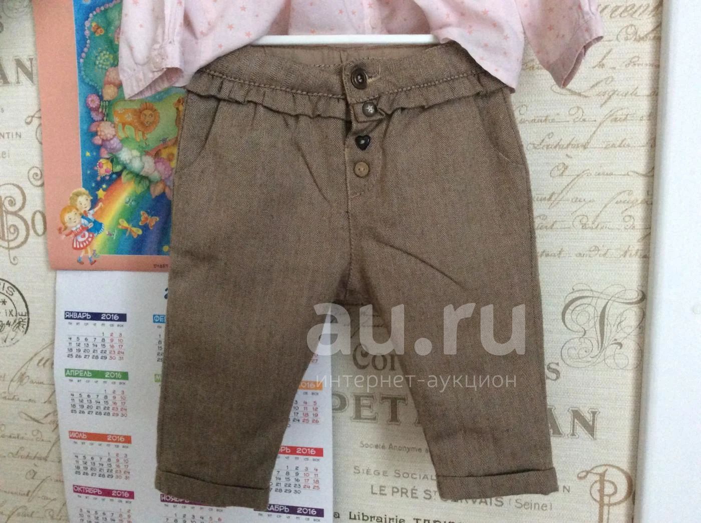 Брюки на хлопковом подкладе на девочку Zara 6-9 мес 74 см