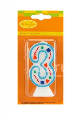 Свеча-цифра 3 Голубое конфетти