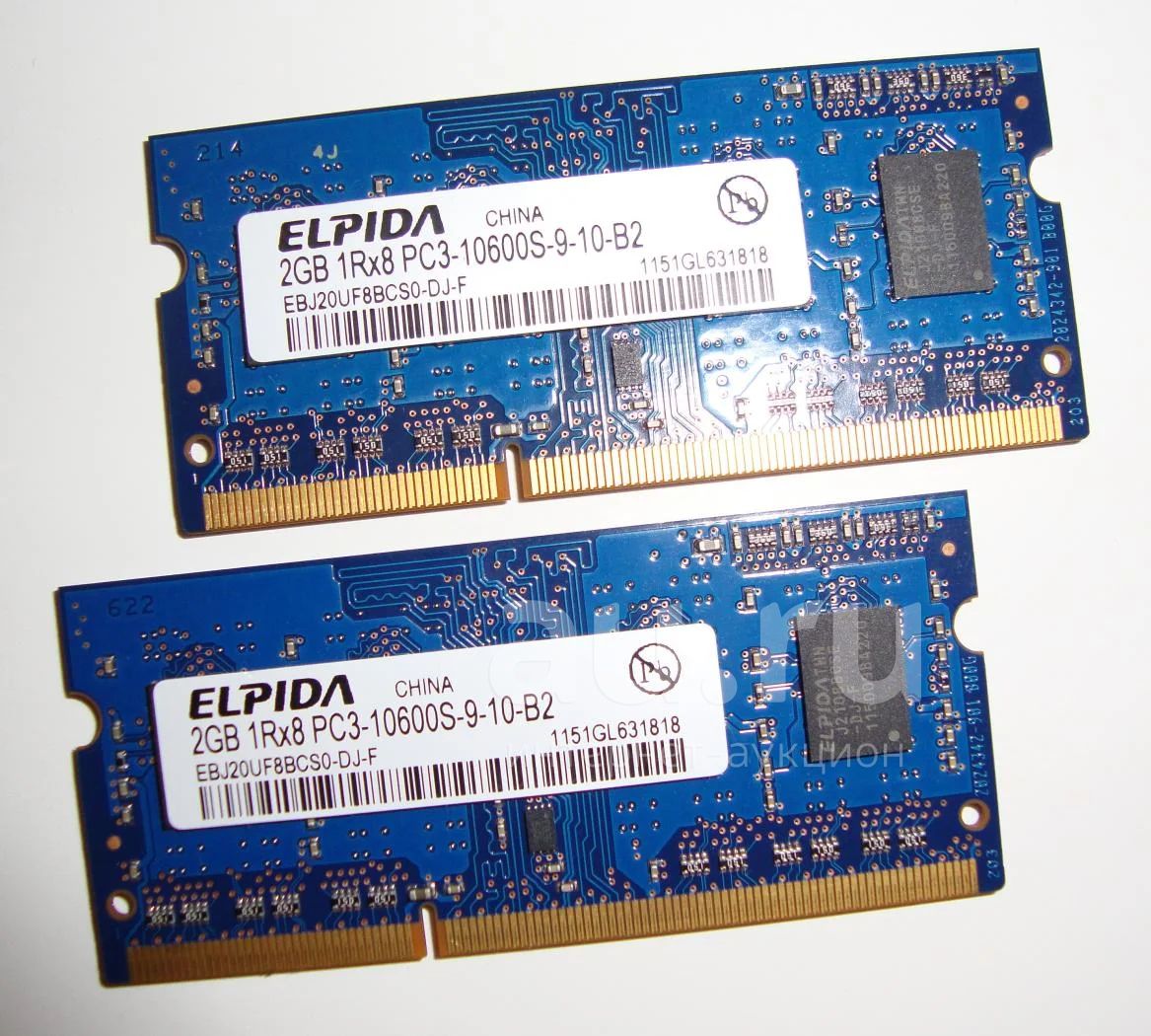 Оперативная память Elpida 4Гб (2 модуля по 2Гб объемом, 1333Мгц частота, SO-DIMM DDR3 формат)