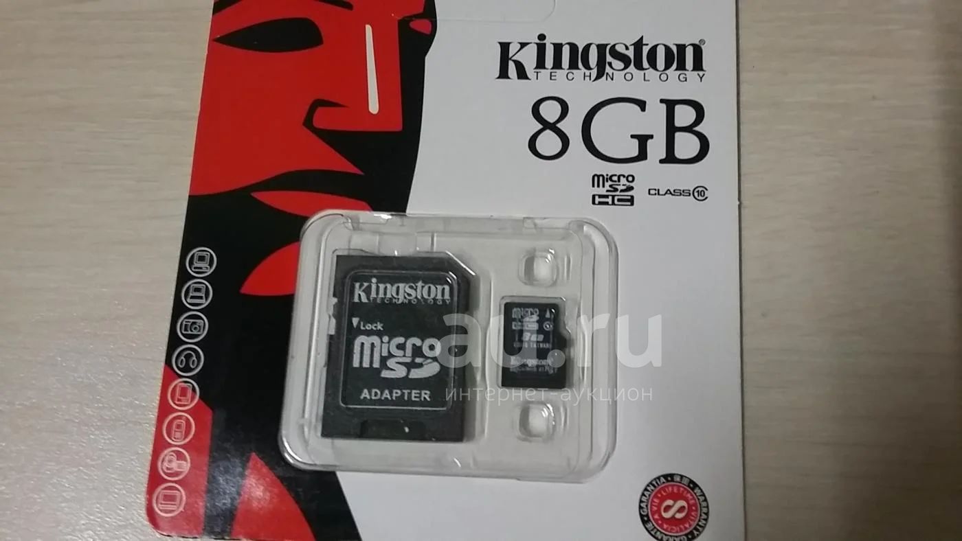 8GB Карта памяти MicroSDHC Kingston + SD адаптер class 10 Новая Гарантия