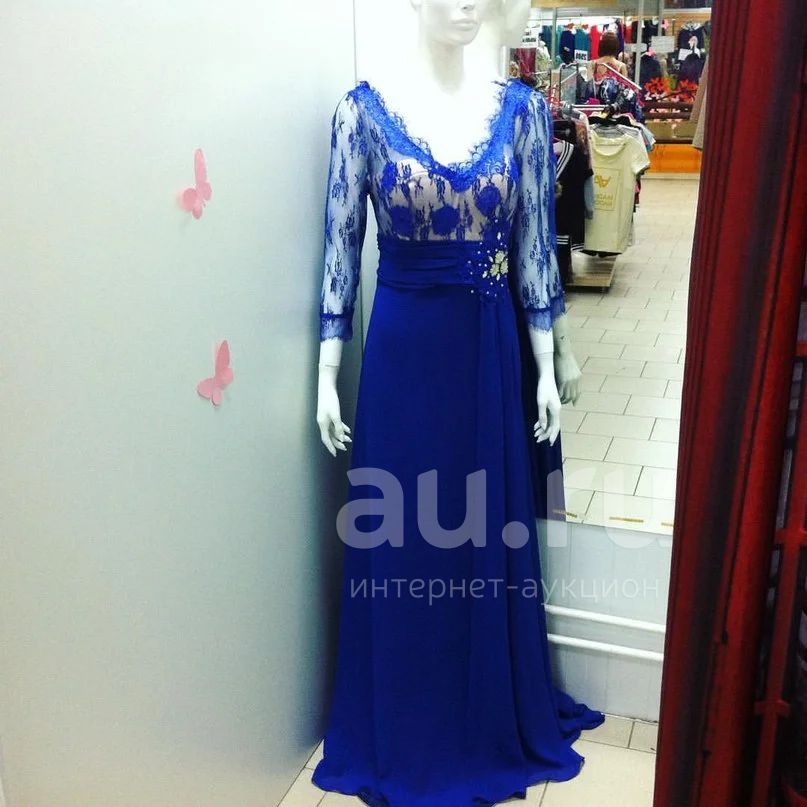 Вечернее длинное синее платье с гипюром новое