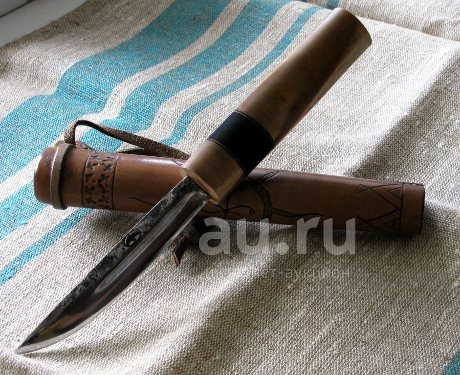 Продам нож якутский (для правши). Клинок кованный сталь углеродистая У8 зонная закалка. Длина 115мм ширина 18мм толщина 4мм, рукоять сувель березовая, граб черный 115мм. Ножны кожа натуральная. Внимание сталь углеродистая требует ухода, склонна к коррозии, по желанию могу оксидировать.