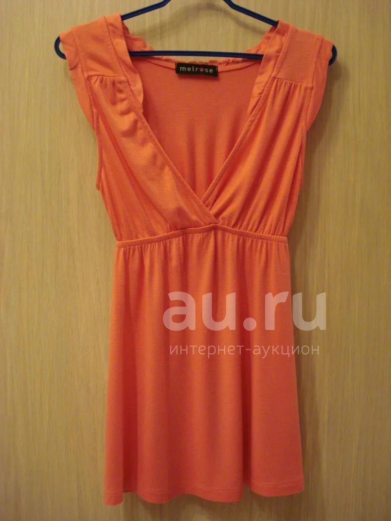 Трикотаж, под грудью резинка, цвет коралловый, длина 67 см.