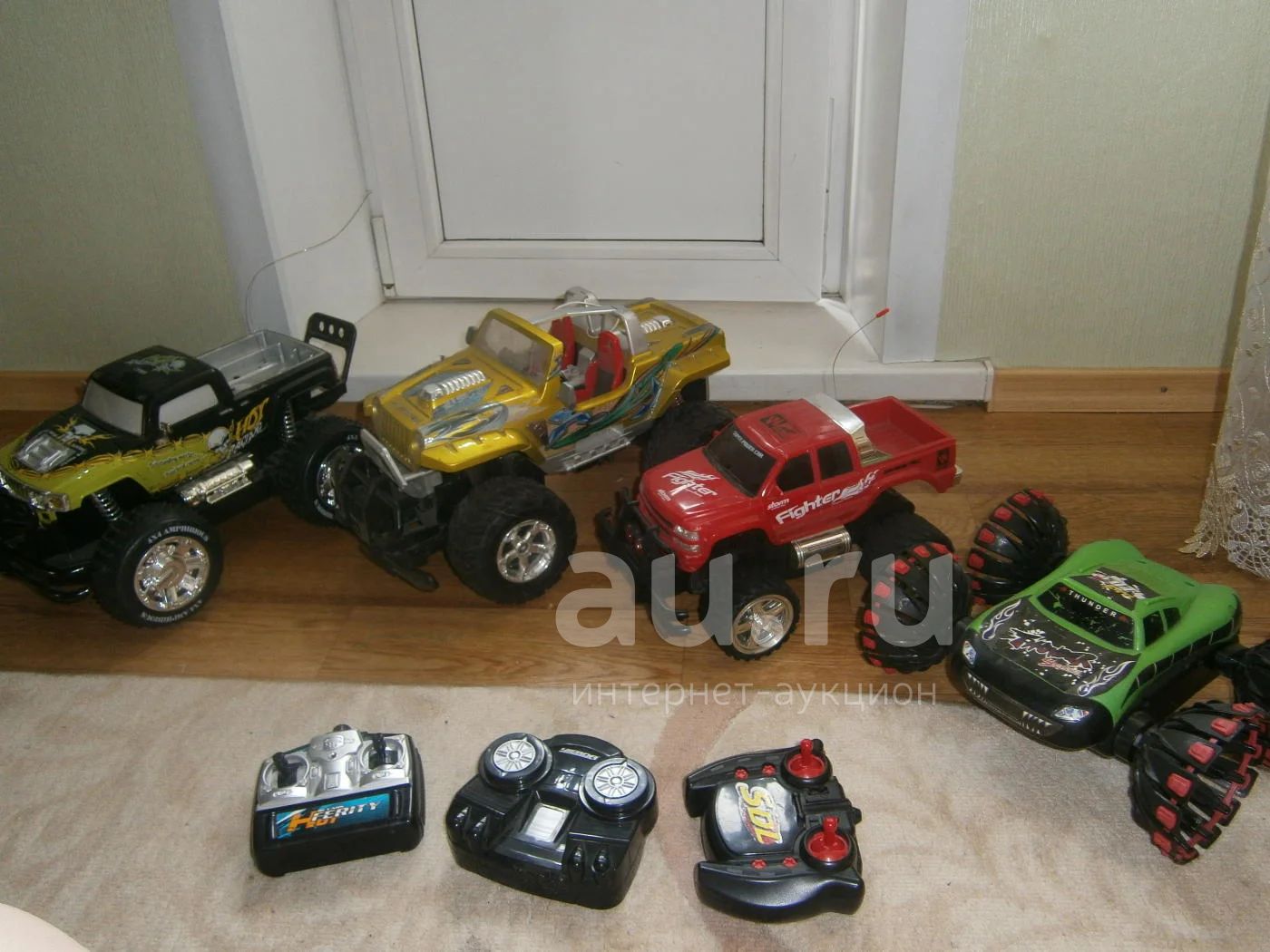 Машины р\у нерабочие и без аккумуляторов. черный пикап-амфибия включается, музыка играет, колеса крутят только с одной стороны. корпус у всех целый.
