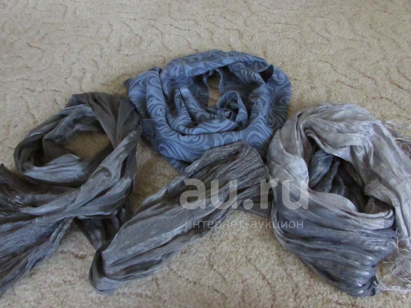 3 шарфа похожей гаммы сине-серо-голубой