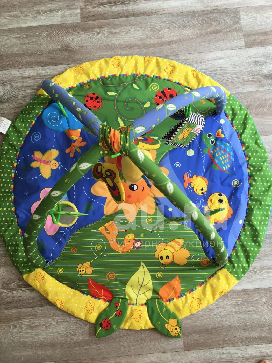 Состояние хорошее, без дырок и пятен. Батарейки на бабочке сели и их никак не поменять. Коврик стирали.