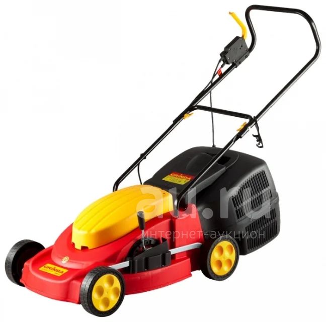 Газонокосилка электрическая предназначена для подстригания травы при уходе за газоном. Имеет функции кошения и регулировки высоты кошения.