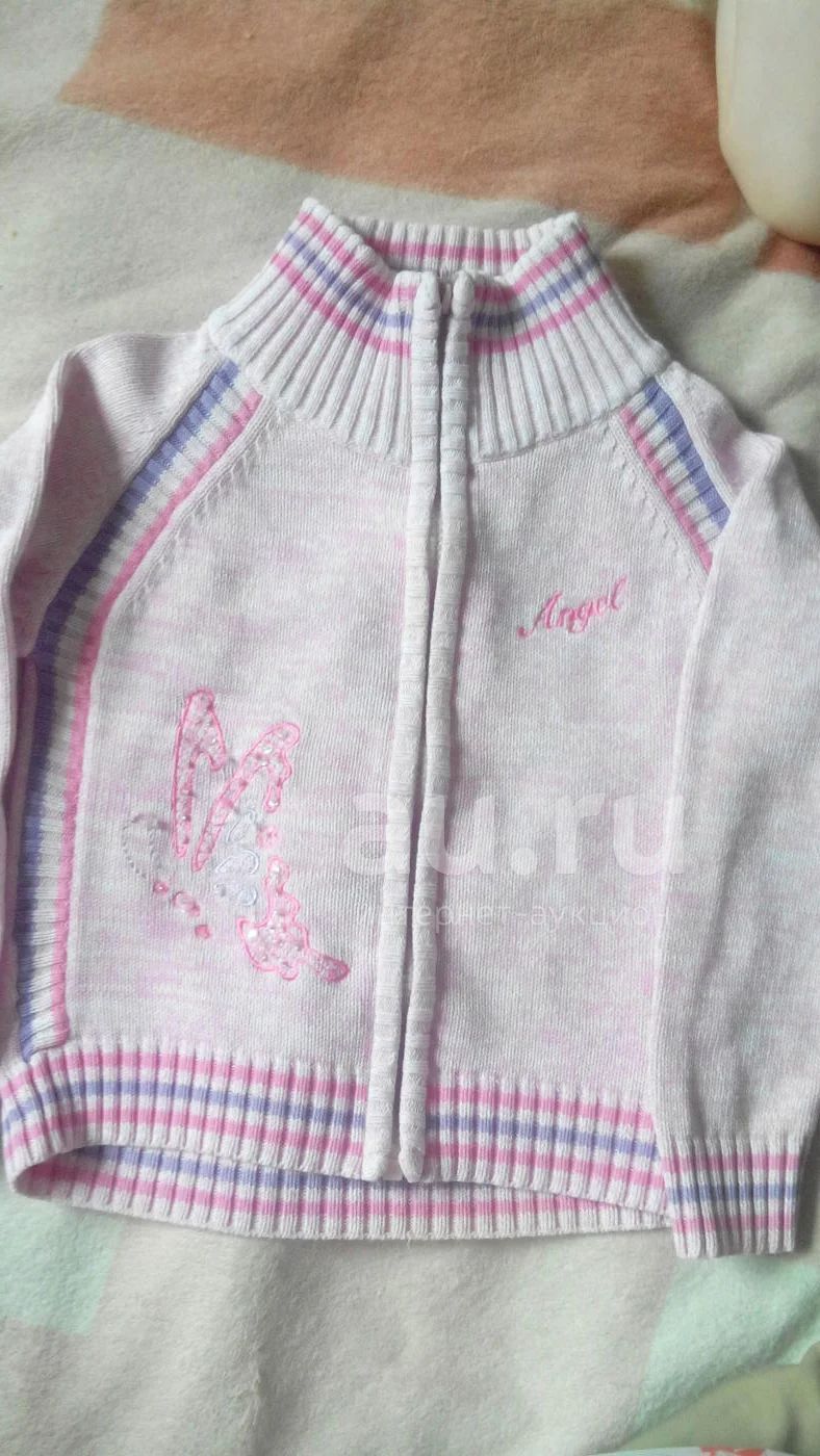 Целая кофта, без порезов, затяжек. Есть едва заметные пятна от сока.