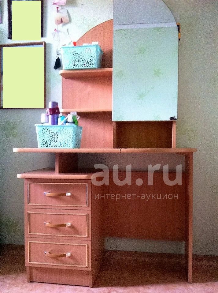 Удобный и красивый столик в отличном состоянии, выдвижные ящики исправны, легко открываются. Имеется много места для хранения баночек, кремиков рядом с зеркалом и за ним
