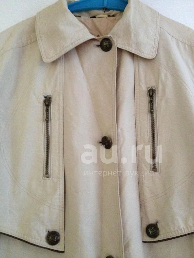 Очень качественный плащ 46 размера. Длина 125 см.
