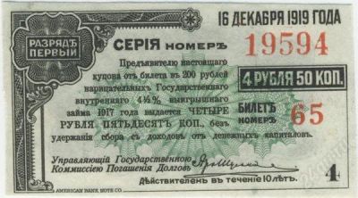 Купон Государственного внутреннего 4.5% выигрышного займа 1917г.