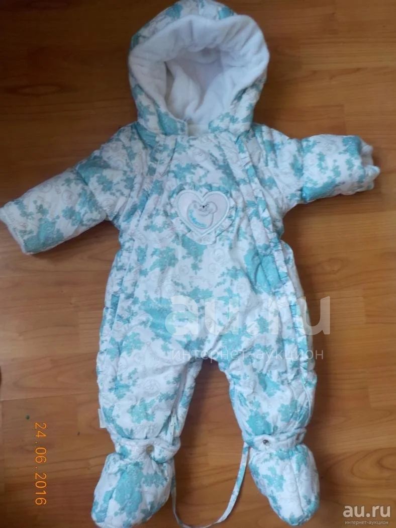 Комбинезон зимний состояние отличное,практически идеальное, цвет более нежный,бирюзовый фото не передает этого) На застежках кристаллы. Производство Италия Orso Bianko, какая то новая технология, комбинезон очень теплый, но мягкий и легкий, покупали на выписку (в ноябре), размер 62-ой, но дочка в нем не "утонула", зато потом носили до пяти месяцев (до марта) - благодаря тому, что ботиночки пристегиваются, размер увеличивается как минимум до 68-го, а то и больше. Покупали за 5600 рублей (цены на новые можно посмотреть в интернете). В комплекте, кроме ботиночек, еще рукавички.