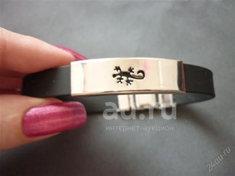 Металлическая застежка и вставка. Сам браслет вроде из толстой резины. Он регулируется по размеру руки. Застежка снимается и обрезается.