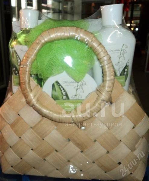 Очень красивый и практичный, корзина из бамбука, которая останется как сувенир, как раз подходящая для лета...можно ходить на пляж и не только...так же в состав подарка входит: гель для душа, лосьон для рук и тела, скраб для тела, кристалическая соль для ванны, мочалка, губка. Очень хороший подарок!!!!