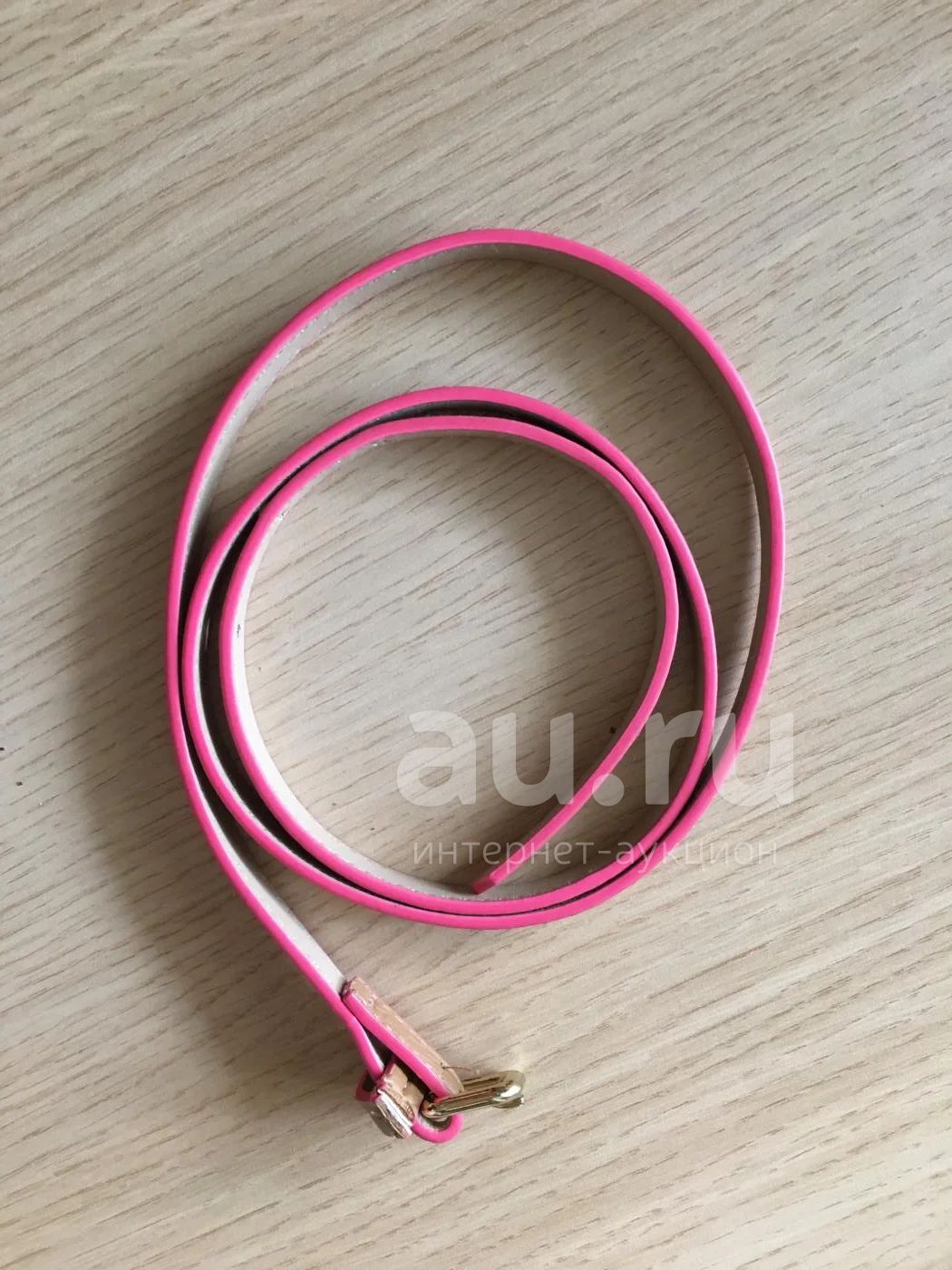Тонкий ремень цвет camel с розовой окантовкой,длина 101см.
