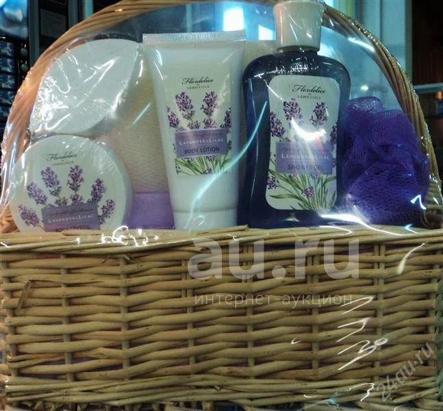 очень красивый и нежный подарок!!! в состав входит, корзина из ивы, гель для душа, лосьон для рук и тела, кристалическая соль для ванны, шипучая соль для ванны, мочалка, губка!! все то, что необходимо!!!