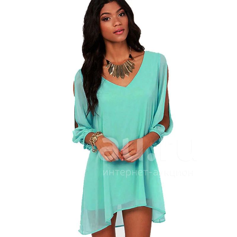платье-туника boho шифон. цвет бирюзовый размер 48