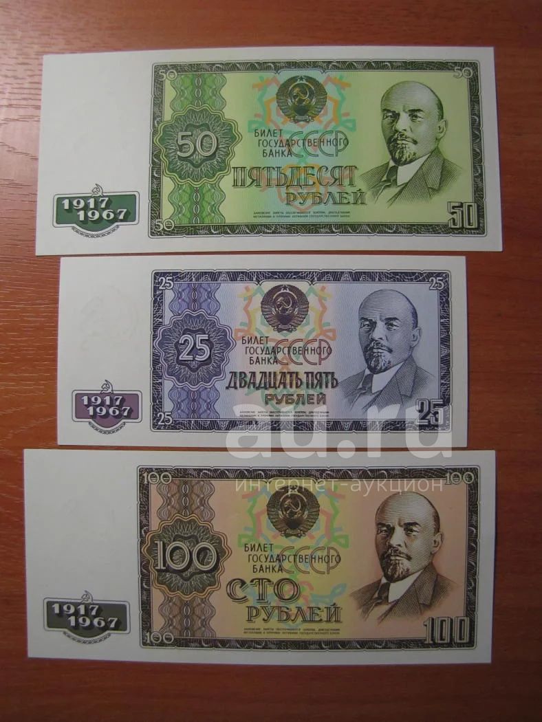 Комплект банкнот 25 рублей, 50 рублей, 100 рублей 1967 года. Проектные банкноты СССР, не вошедшие в обращение.