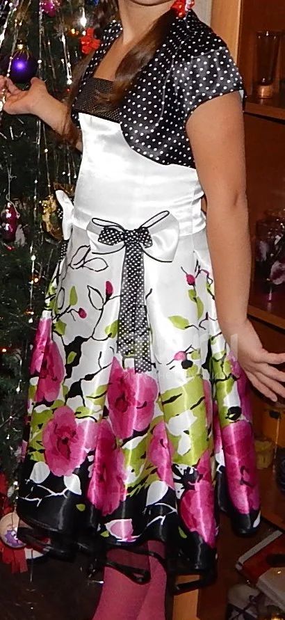 Платье+болеро. Платье регулируется по ширине. Размер 40-42 (мы одевали на рост 150 - 152 и выше подойдет и, думаю, и на 146-148 ).